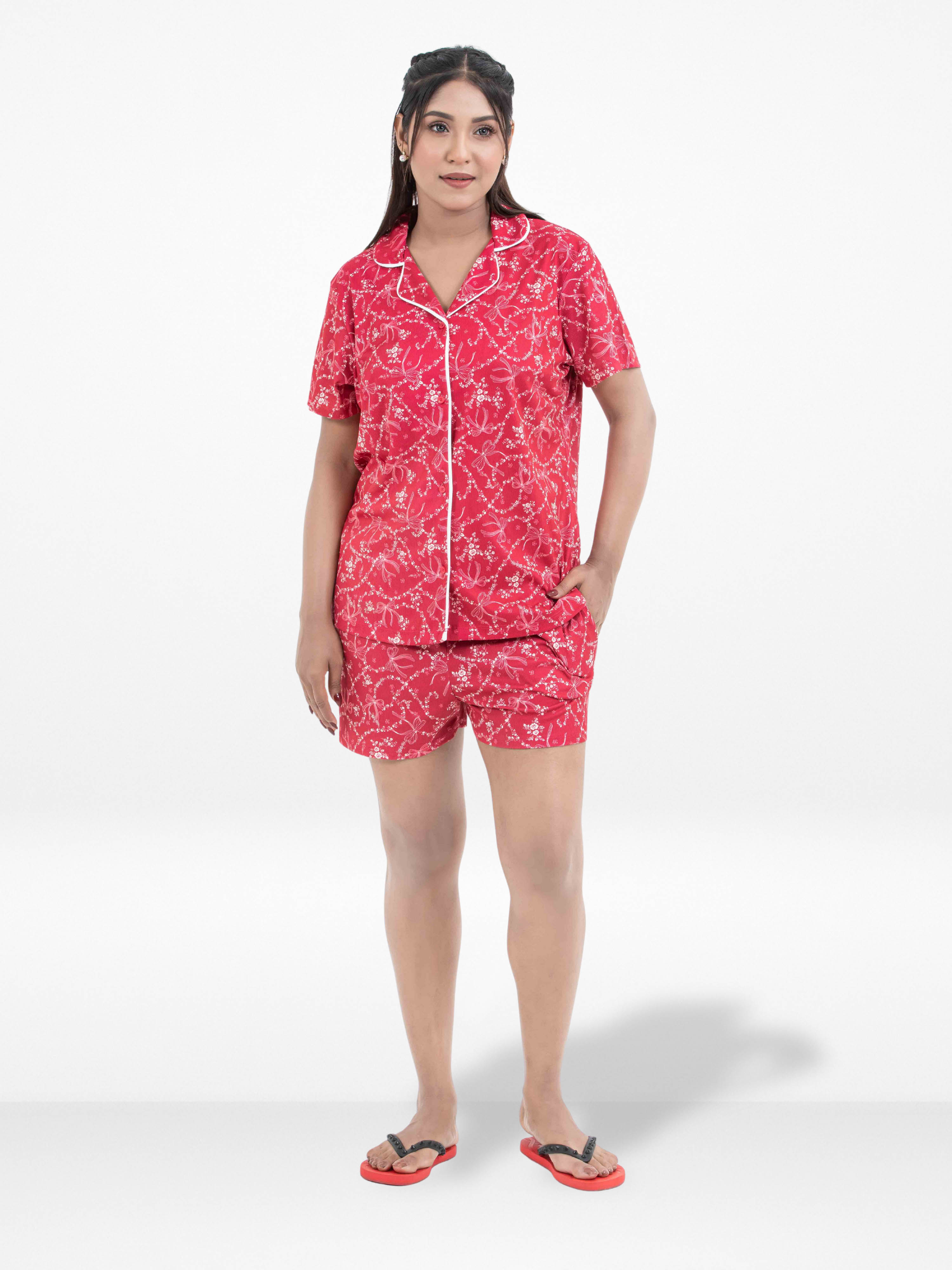 This 3-piece Women’s Pajama Set offers luxurious Yummy Rib comfort with a touch of elegance. Designed with contrast piping for a stylish accent, it features a classic notch collar and button-down shirt that brings timeless sophistication to your sleepwear collection. The set includes both short and long pants, allowing versatile wear across seasons. Crafted from smooth fabric, it delivers a soft and silky feel against the skin, perfect for lounging or a restful night’s sleep. Its stylish design also makes it perfect for lounging during special occasions, such as pajama parties, bridal showers, or as post-shower loungewear.