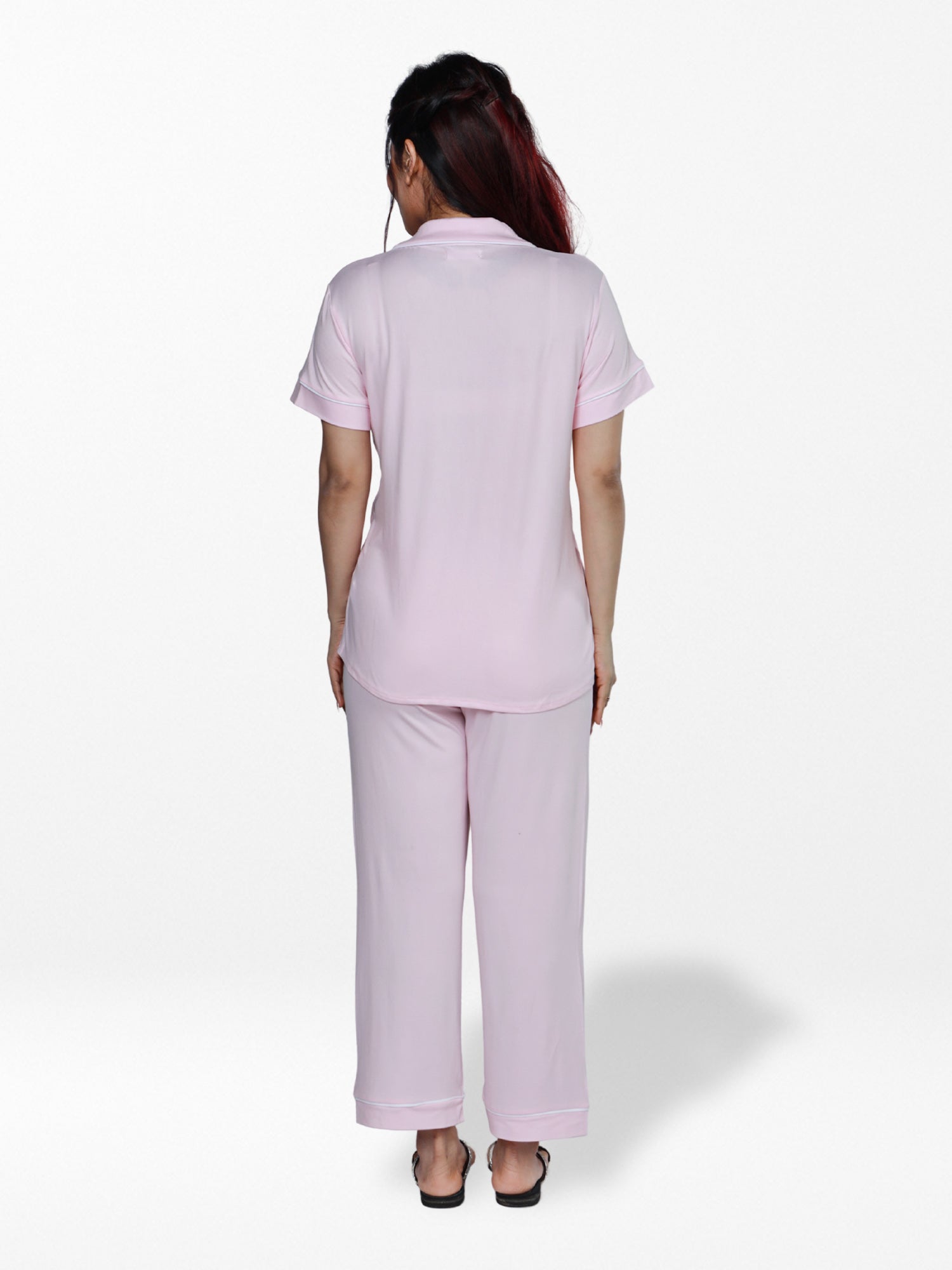 Women’s Solid Night Suit Set – Shirt & Pyjama | Soft Nightwear Dress, 2 Piece Sleepwear for Women, Comfortable Loungewear