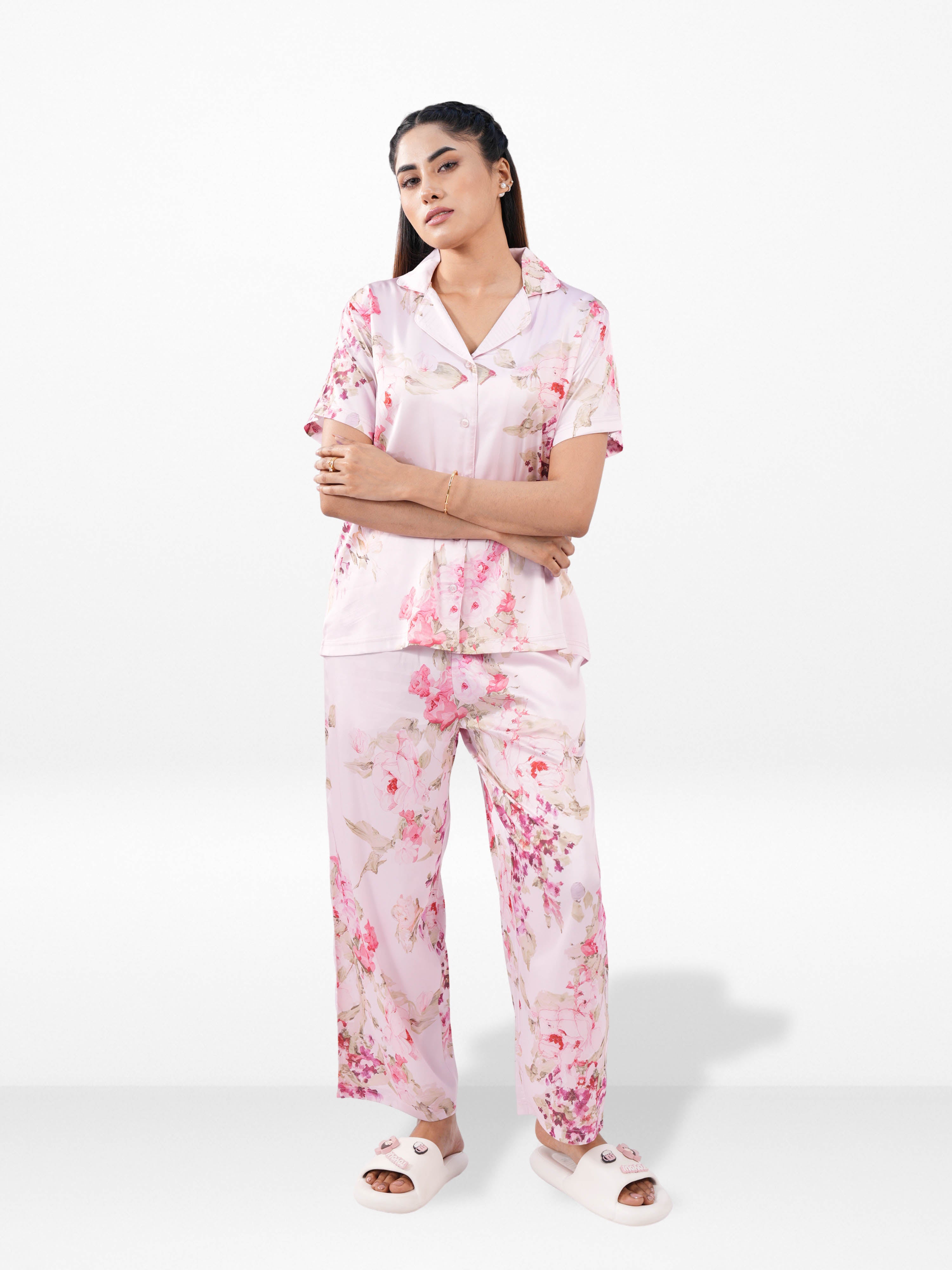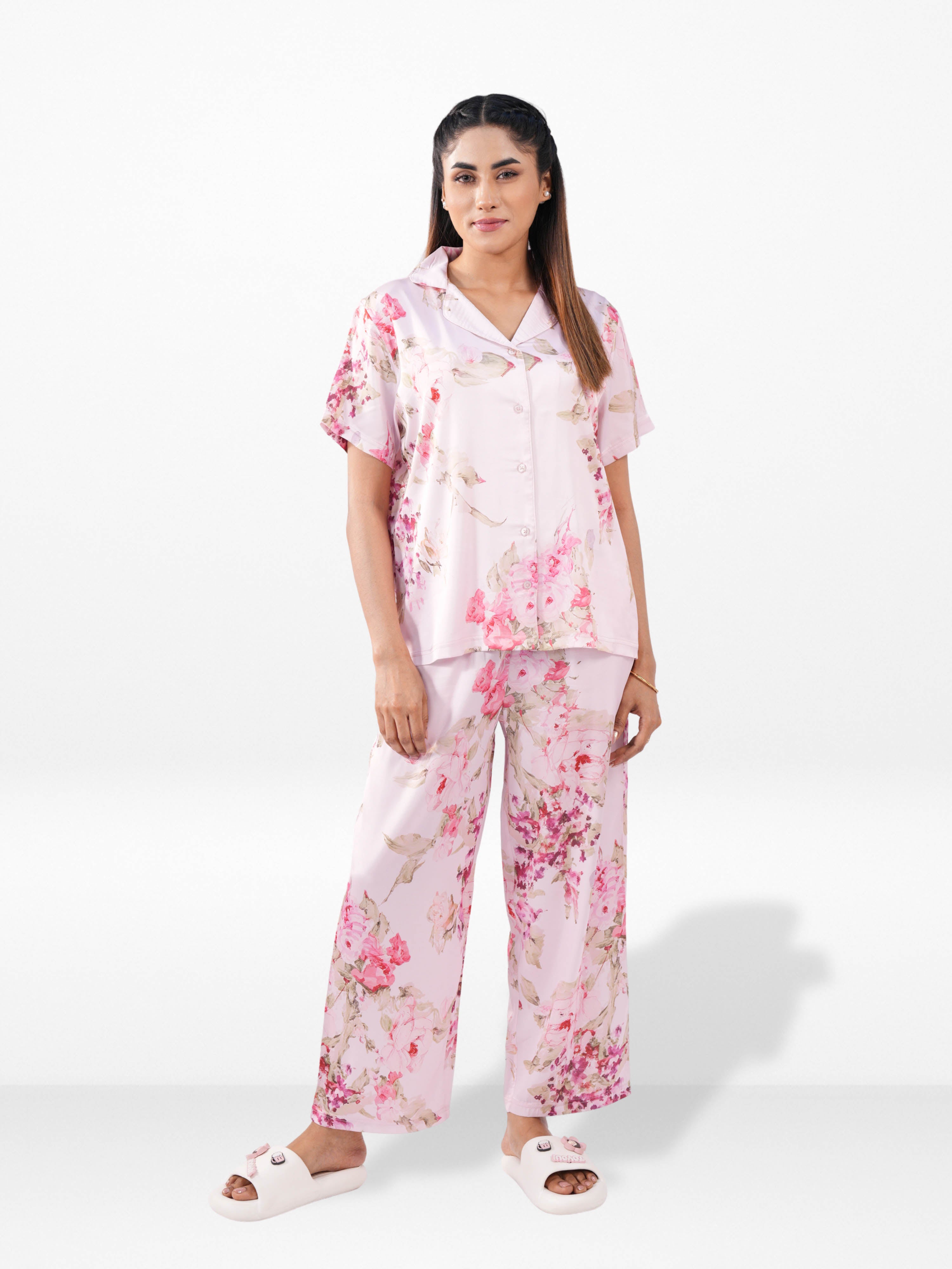 Women’s Short Sleeve Satin Sleepwear Set – Notch Collar 2 Piece Pajama Outfit | Comfy Nightwear, Soft Summer Lounge Set for Women