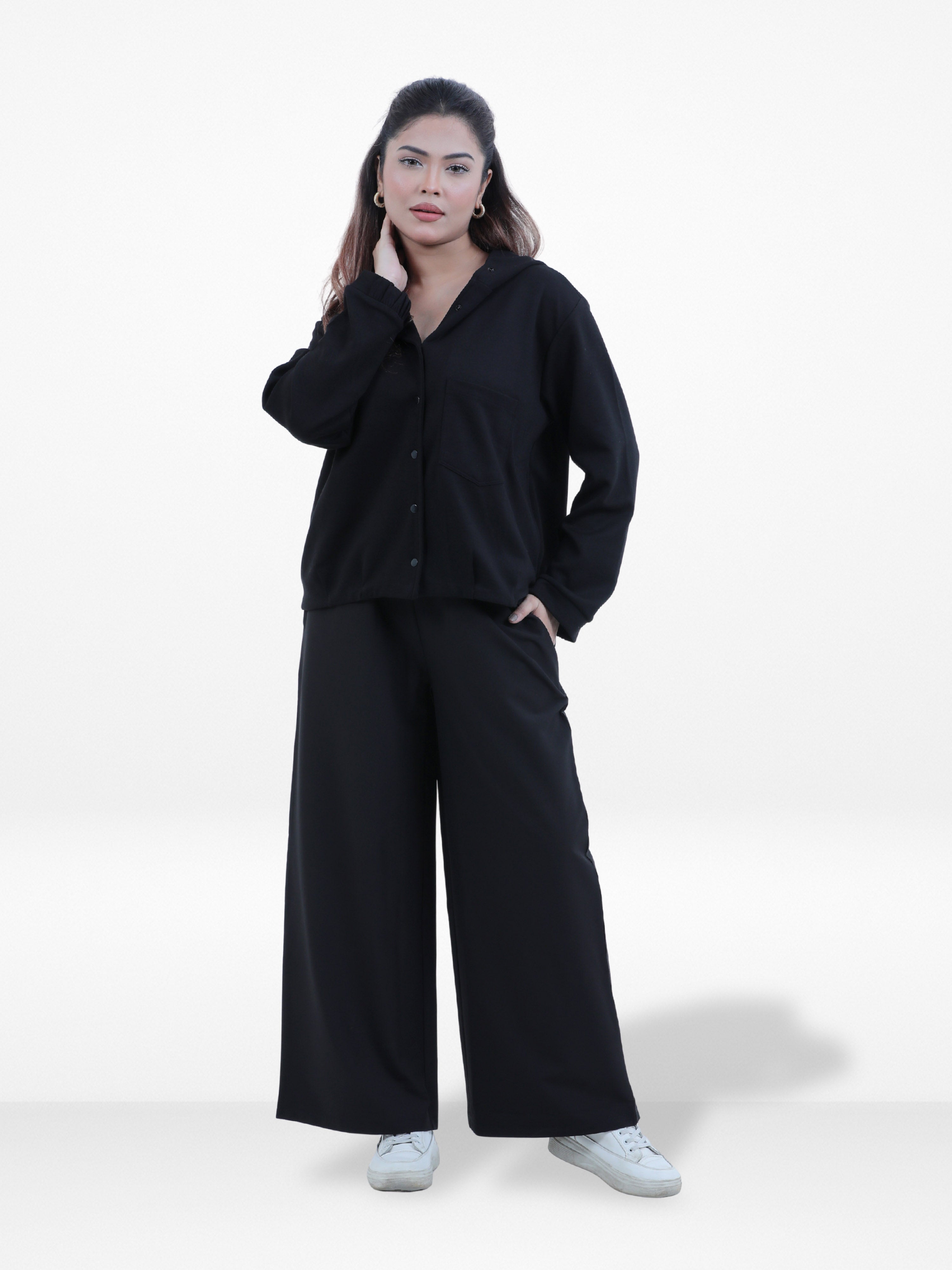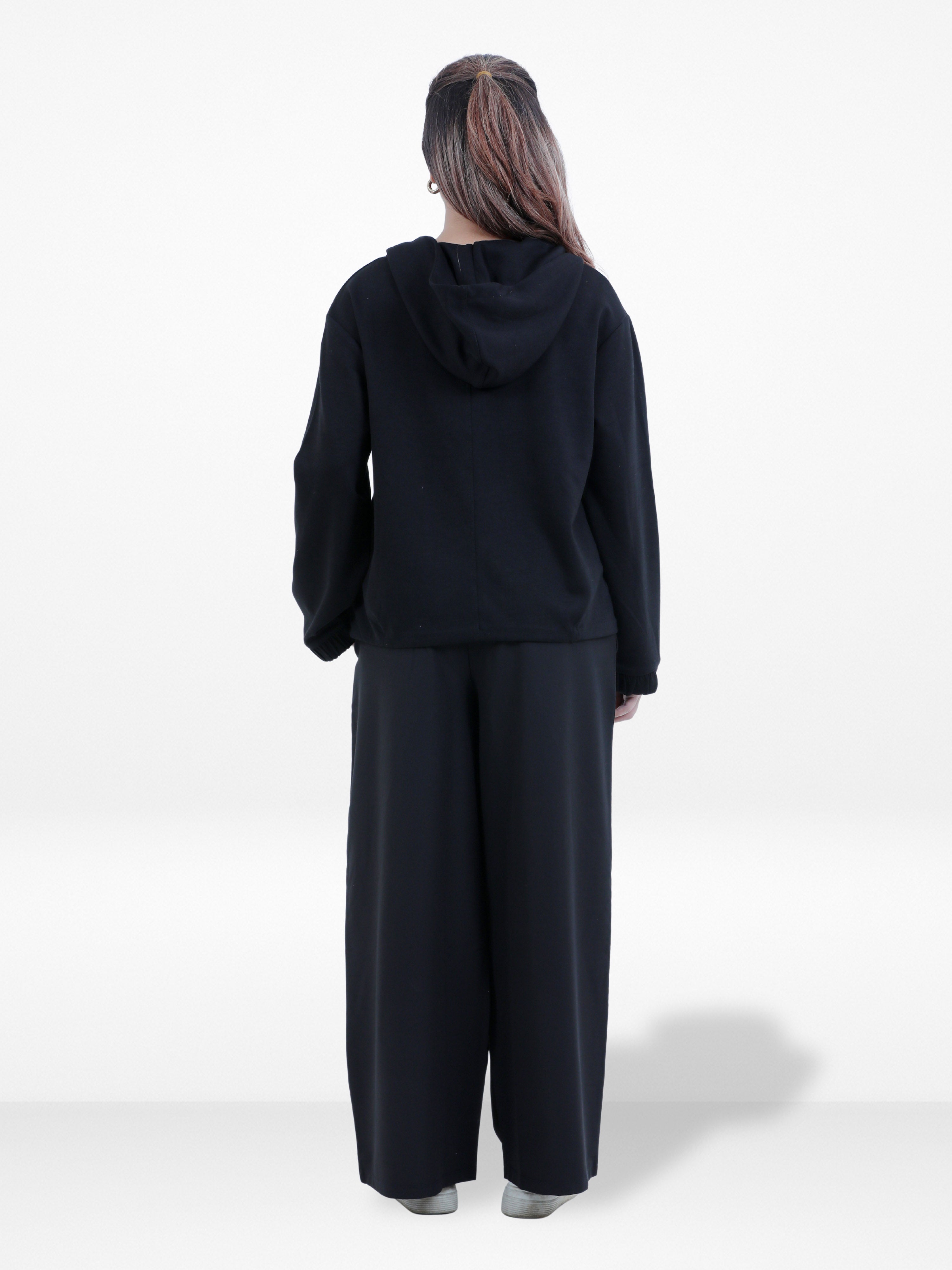 Crafted from premium knitted Scuba Fabric (80% Polyester, 15% Rayon, 5% Spandex), it offers a smooth, soft texture with a cozy yet breathable feel. The fabric stretches gently for easy movement while maintaining a sleek silhouette, ideal for lounging, casual outings, or active days on the go.
