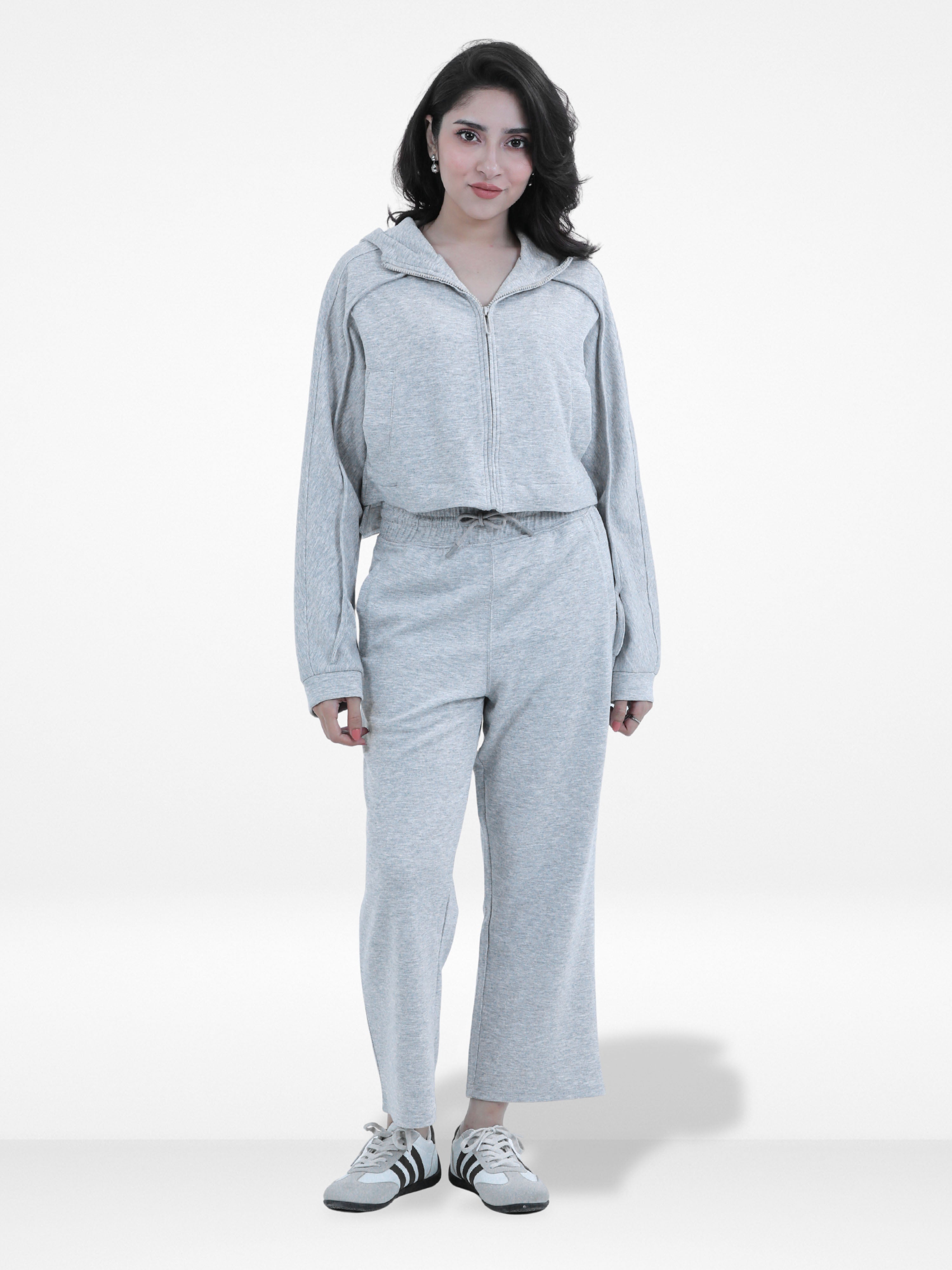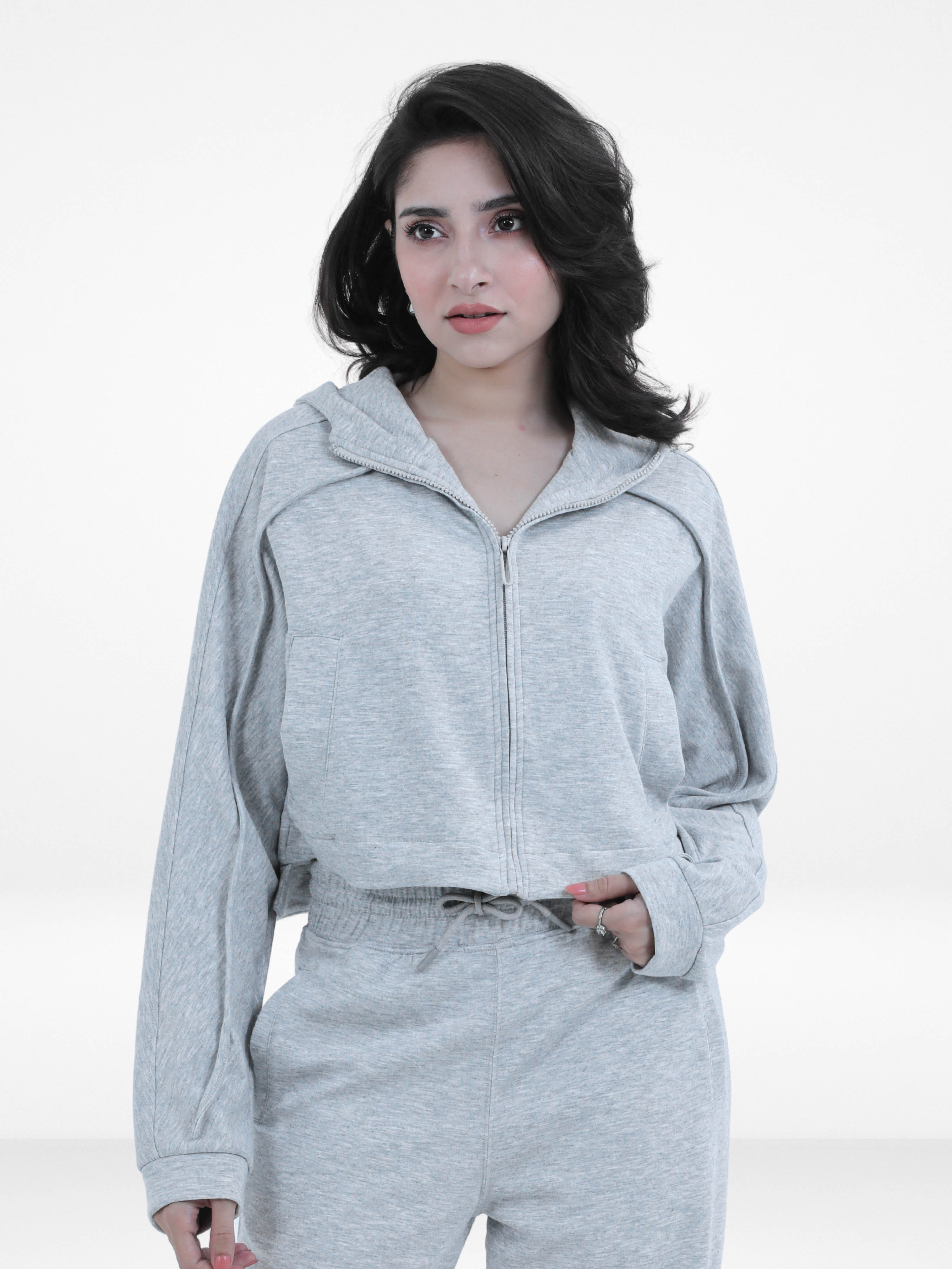 Women’s Crop Hoodie – Casual Solid Long Sleeve Zip-Up Sweatshirt with Drawstring Hood, Trendy Cropped Fit for Everyday Wear