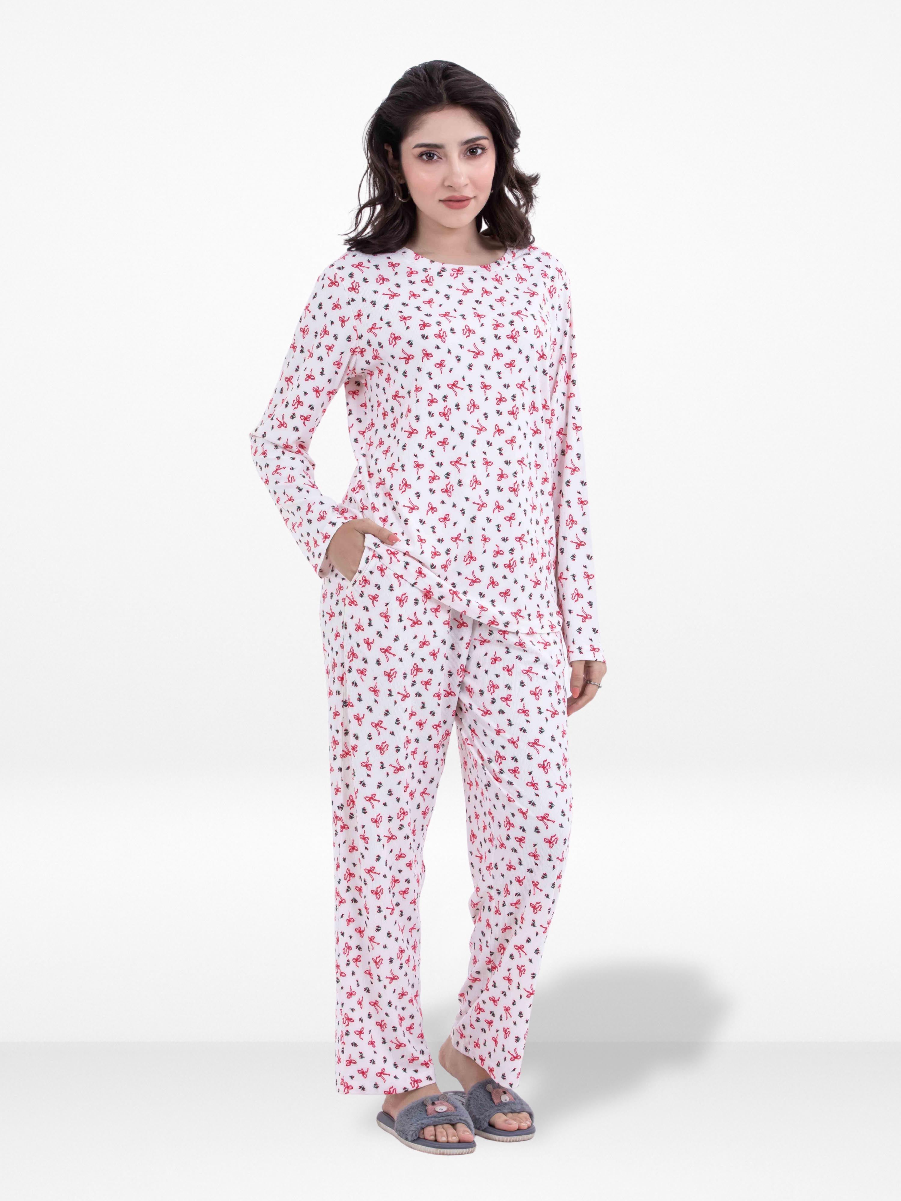 Featuring a playful all-over print, this chic pajama set brings a touch of excitement and personality to your nightly routine.