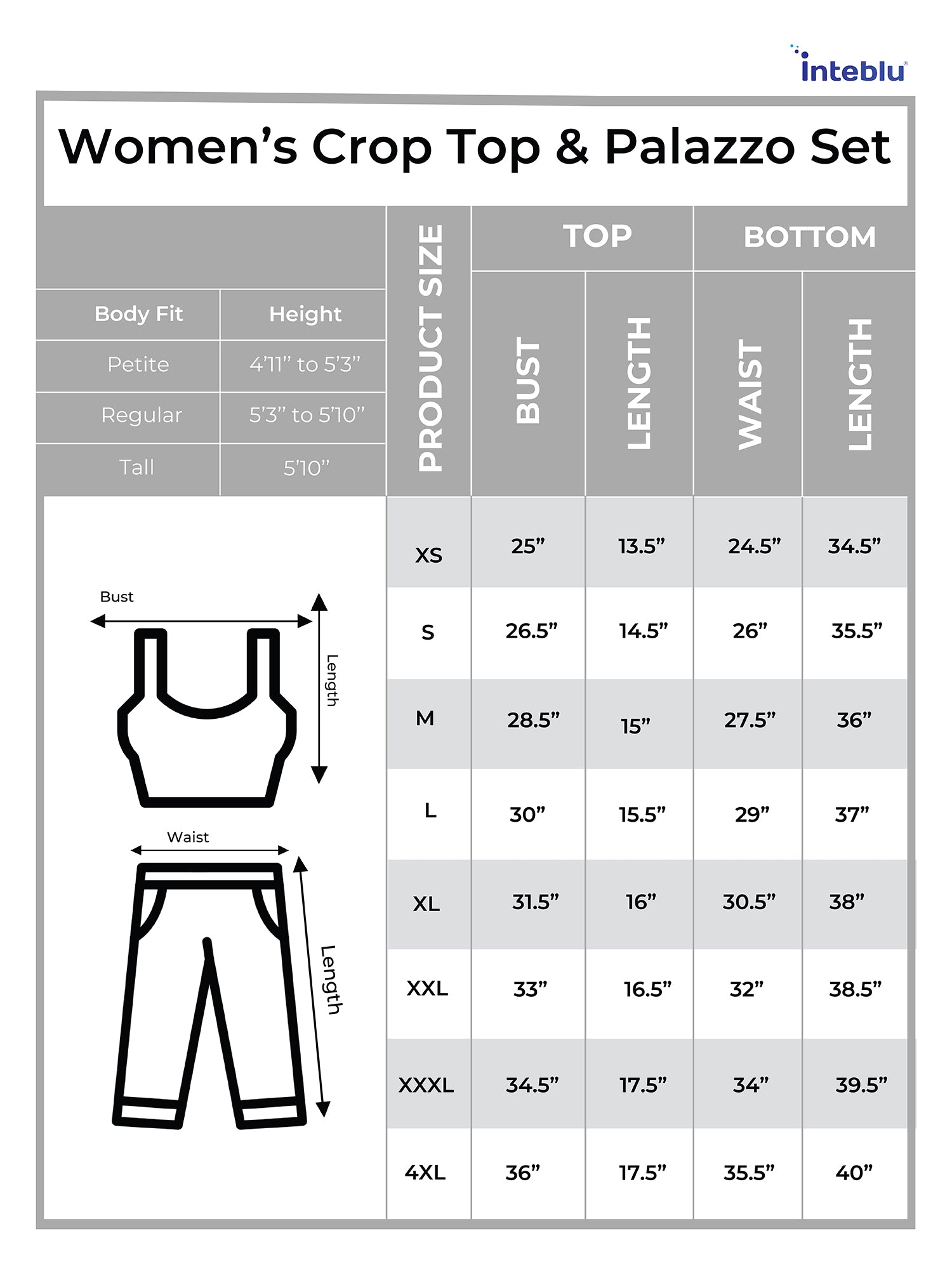 Unleash your inner fashionista with our Women's Crew Neck Crop Top & Palazzo Set, designed to combine comfort, style, and confidence.