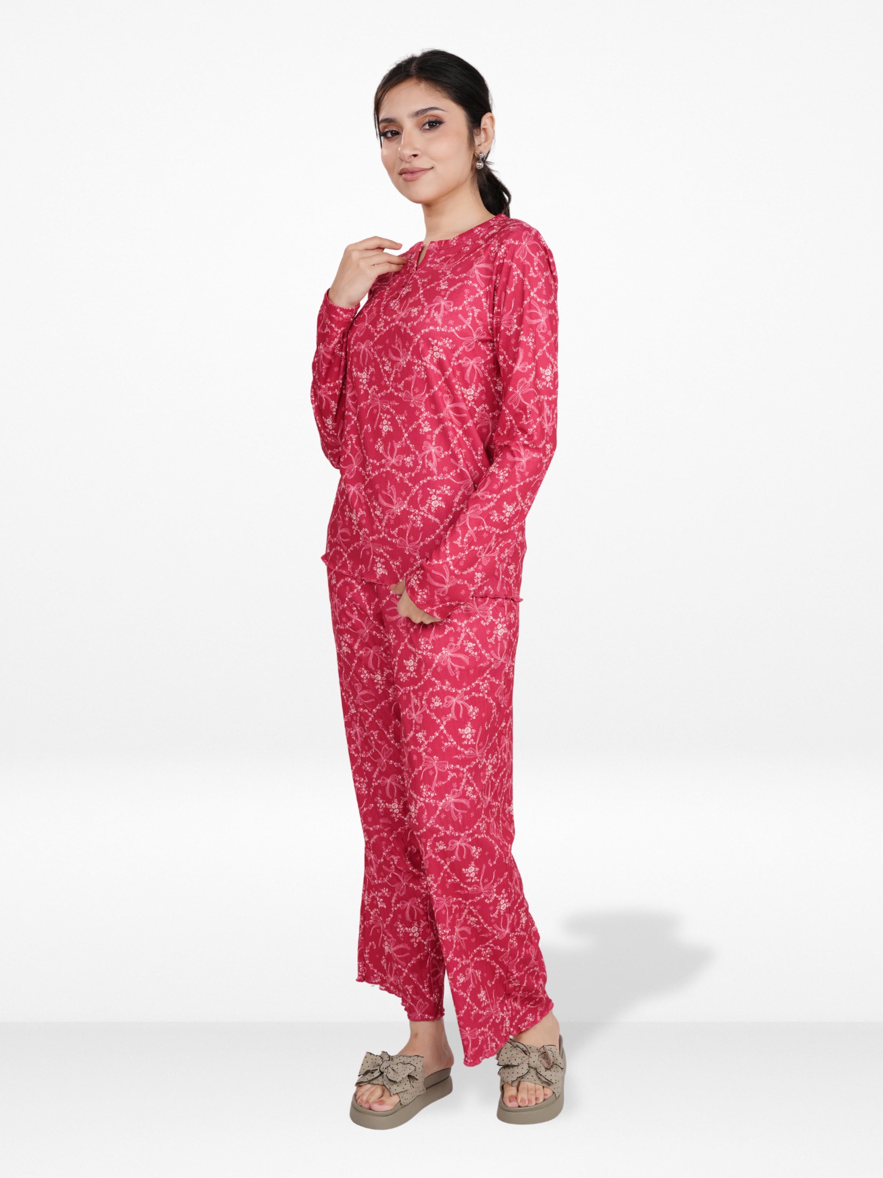 The Crew Neck and button-down top add a refined, sophisticated touch, making this sleepwear perfect for both lounging and bedtime.