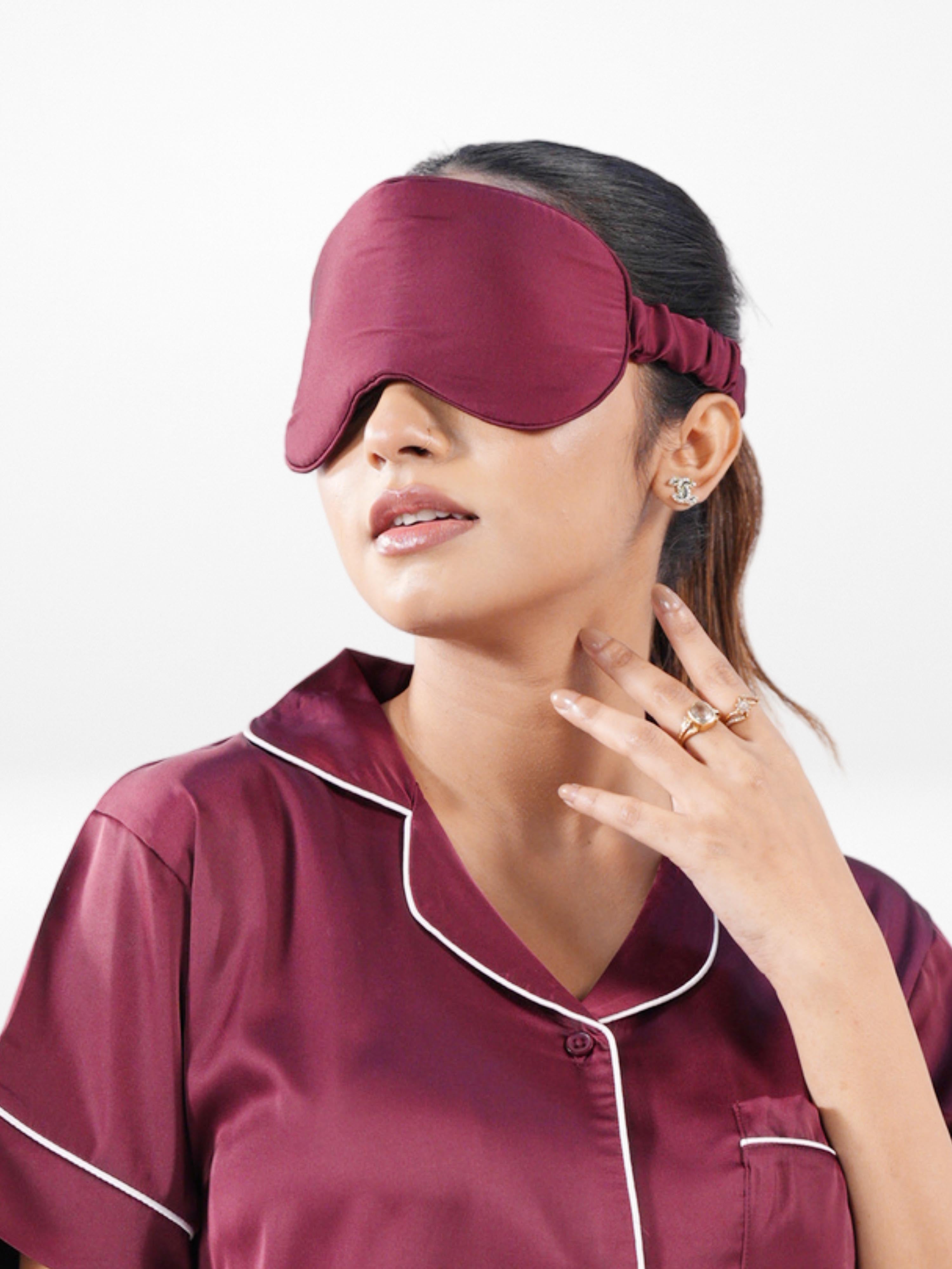 Enjoy deeper, more relaxing sleep with our Women’s Satin Eye Mask, designed to provide gentle comfort and effective light blocking for a peaceful rest. Made with a smooth satin finish, this eye mask feels soft against the skin and is ideal for sensitive skin types.The silky texture helps reduce friction around the delicate eye area while offering a luxurious feel. Designed to match our satin sleepwear collection, these eye masks are available in beautiful solid colors for a coordinated nighttime look.The built-in elastic band ensures a secure yet comfortable fit, keeping the mask in place throughout the night without causing pressure. Lightweight and easy to wear, it’s perfect for bedtime, travel, meditation, or relaxing moments during the day.