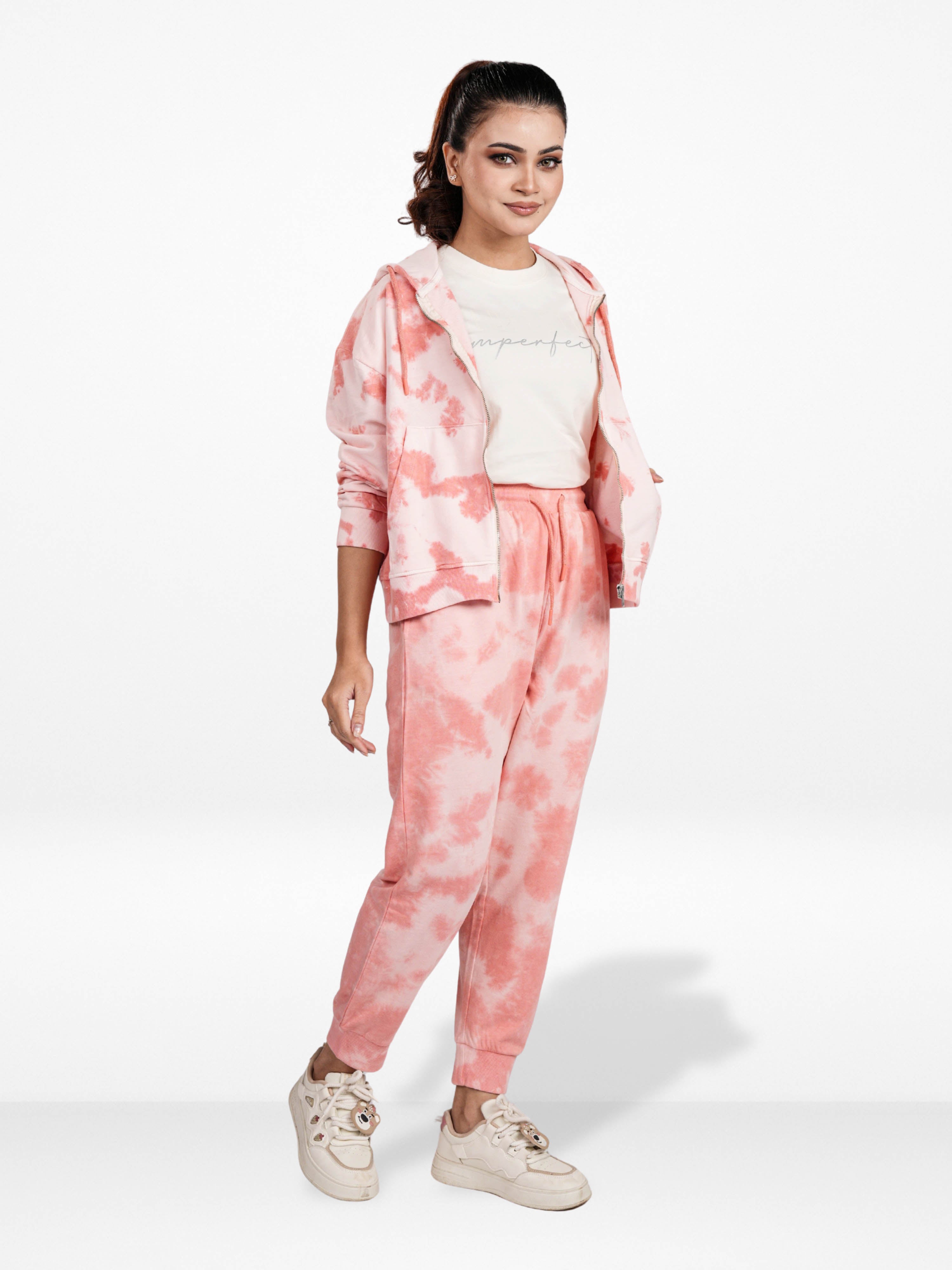 Women's Hoodie & Jogger Set in a trendy tie-dye print. This eye-catching costume has brilliant colors that are sure to turn heads wherever you go. Each piece is hand-dyed with accuracy, creating a unique and intriguing design that expresses your individuality. Experience unsurpassed comfort with the premium-grade fabric that feels soft on your skin and allows for breathability. The hoodie and joggers are designed for all-day wear,