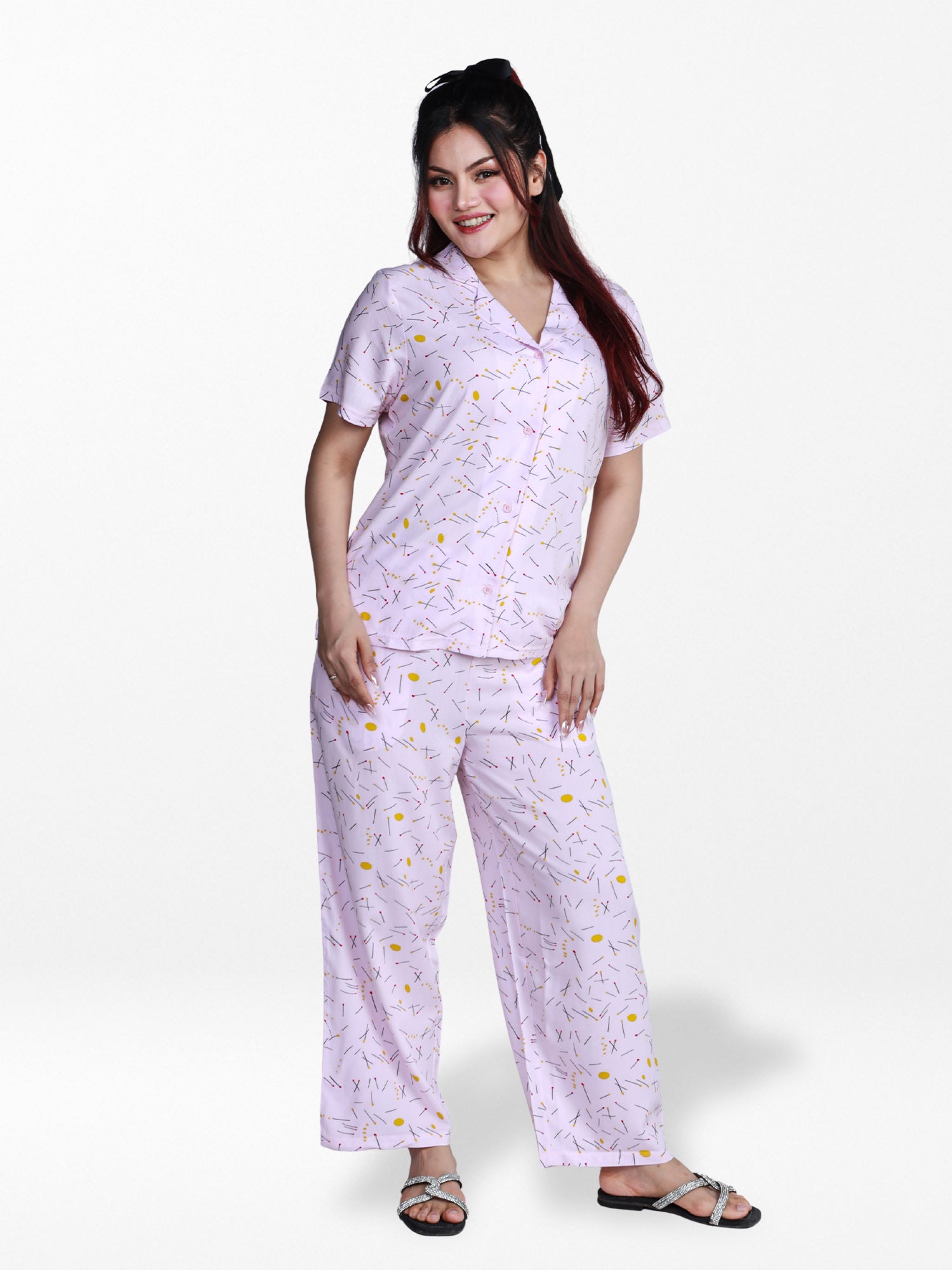 Crafted from 100% premium viscose, this pajama set delivers a lightweight, silky-soft feel against the skin. Known for its breathability and natural cooling properties, viscose makes this set ideal for both warm and cooler nights, keeping you comfortable throughout your rest. The short-sleeve top features a classic notch collar, button-down front, and delicate contrast piping, elevating the design with a touch of sophistication.